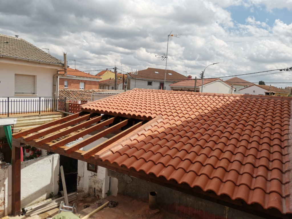 Las cubiertas de madera son totalmente funcionales; se pueden hacer tejados para porches o tejados para pérgolas, cubriéndolos con tégola americana o tejados de madera y teja.